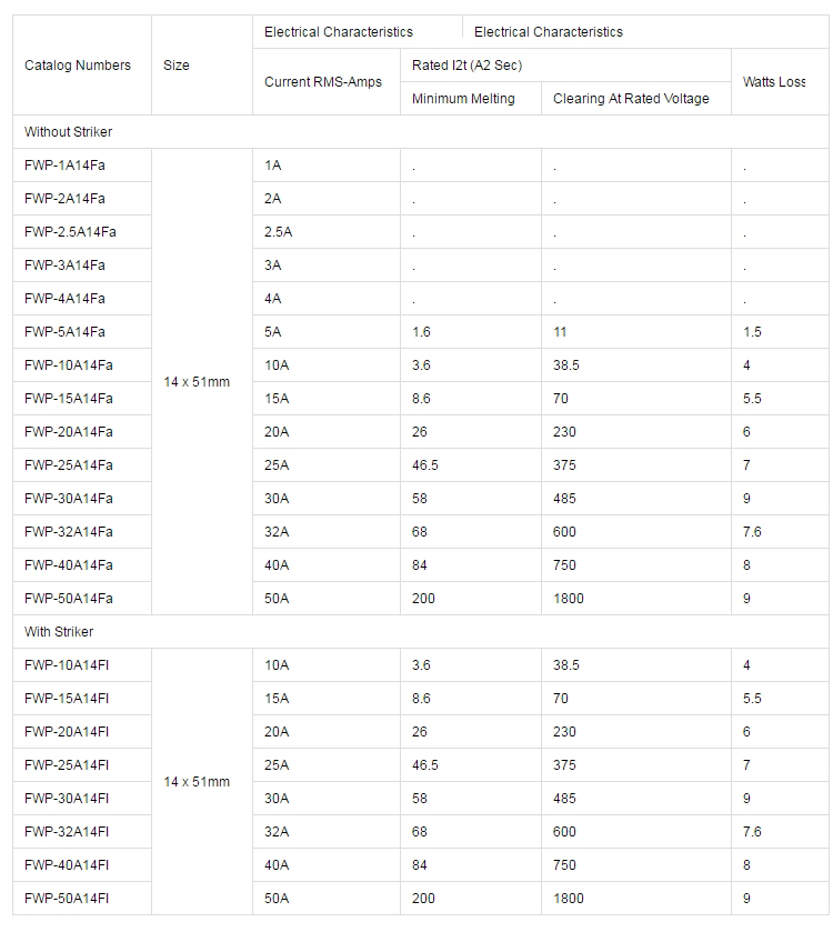 FWP(14 x 51mm)FWP-15A14FI FWP-15A14Fa FWP-10A14FI FWP-10A14Fa FWP-30A14Fa FWP-2A14Fa FWP-25A14FI FWP-25A14Fa FWP-20A14FI FWP-20A14Fa FWP-2.5A14Fa FWP-1A14Fa FWP-4A14Fa FWP-40A14FI FWP-40A14Fa FWP-3A14Fa FWP-32A14FI FWP-32A14Fa FWP-30A14FI FWP-5A14Fa FWP-50A14FI FWP-50A14Fa