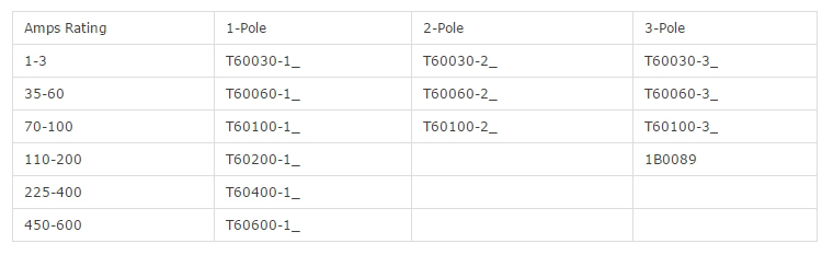 Catalog Numbers (amps)