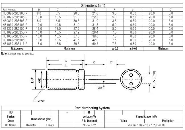 HB超級(jí)電容 HB0830-2R5605-R HB0820-2R5305-R HB1325-2R5156-R HB1625-2R5256-R HB1020-2R5505-R HB1030-2R5106-R HB1860-2R5117-R HB1840-2R5606-R HB1635-2R5356-R