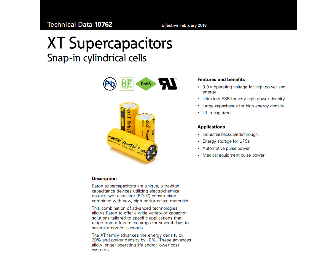 XT系列超級電容EATON XT3560-3R0377-R XT3585-3R0567-R XT3550-3R0287-R