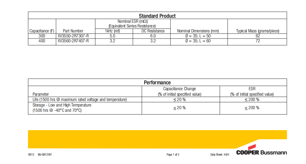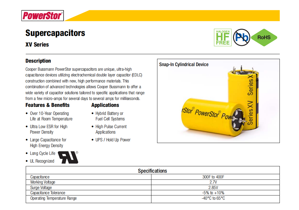 XV系列超級(jí)電容EATON XV3550-2R7307-R XV3585-2R7607-R XV3560-2R7407-R