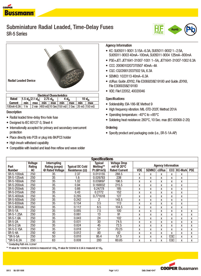 產(chǎn)品型號(hào):SR-5-800mA,SR-5-630mA,SR-5-500mA,SR-5-4A,SR-5-400mA,SR-5-315mA,SR-5-3.15A,SR-5-2A,SR-5-250mA,SR-5-200mA,SR-5-2.5A,SR-5-1A,SR-5-160mA,SR-5-125mA,SR-5-100mA,SR-5-1.6A,SR-5-1.25A,