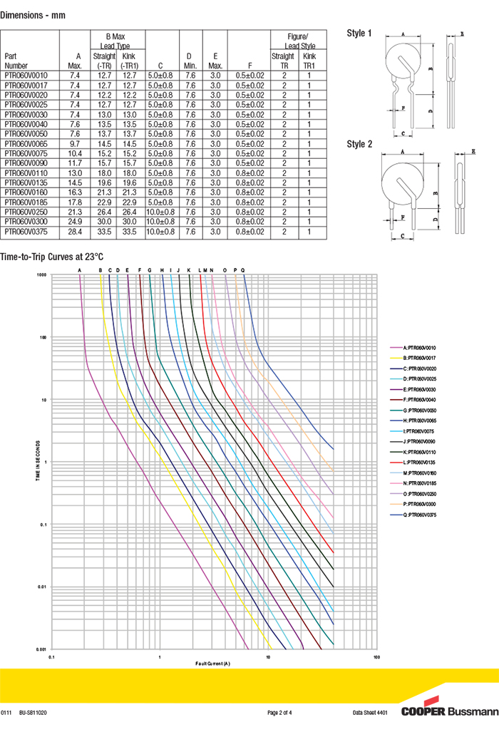Bussmann PTR060V0090-TR 可恢復保險絲 圓形 插件保險絲