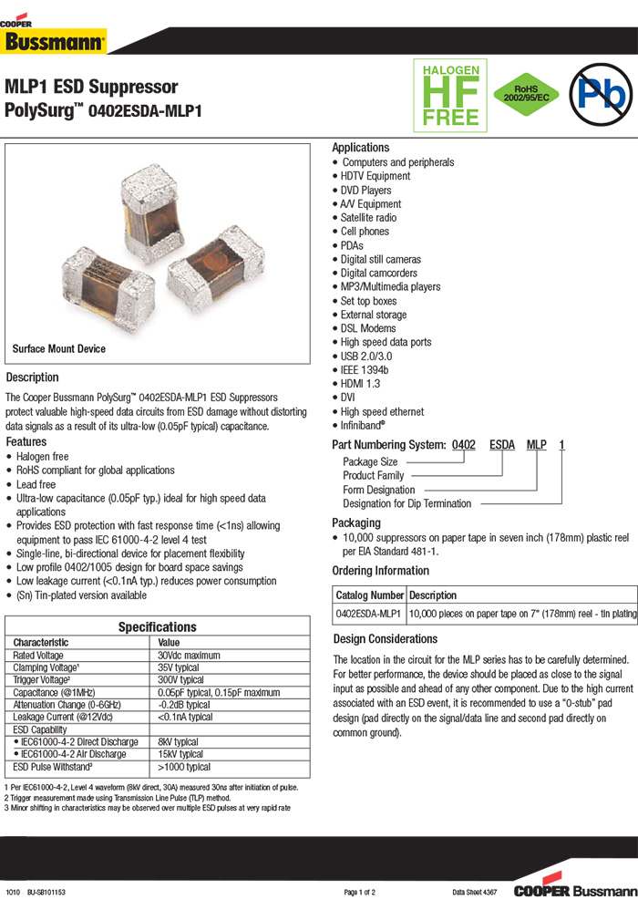 當前位置:首頁>>產(chǎn)品中心>>Bussmann電子類產(chǎn)品>>ESD靜電抑制器