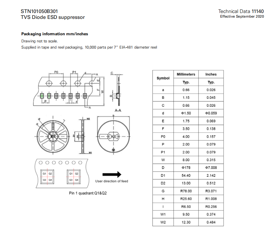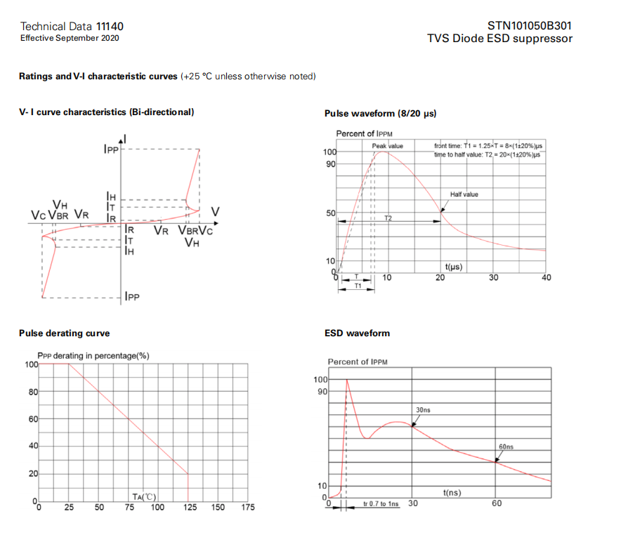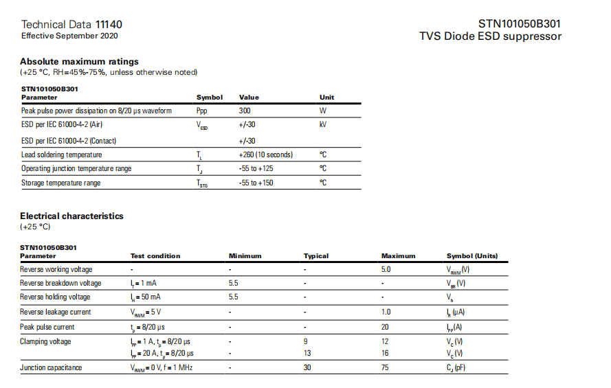 STN101050B301系列 TVS二極管ESD抑制器